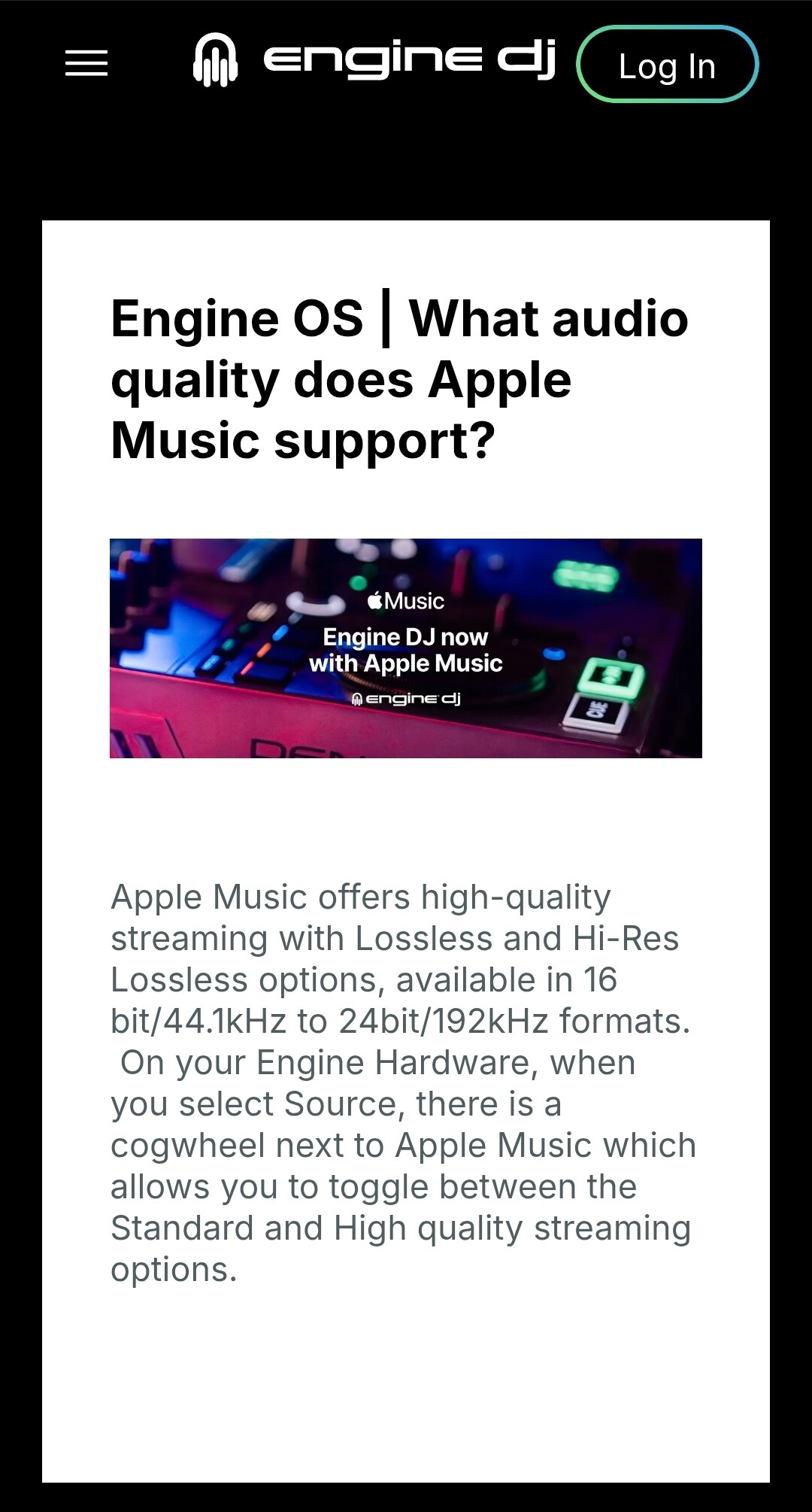 Does anybody know how high Apple Music Streaming Bit Rate is in Engine? Unfortunately, there are no settings for this.