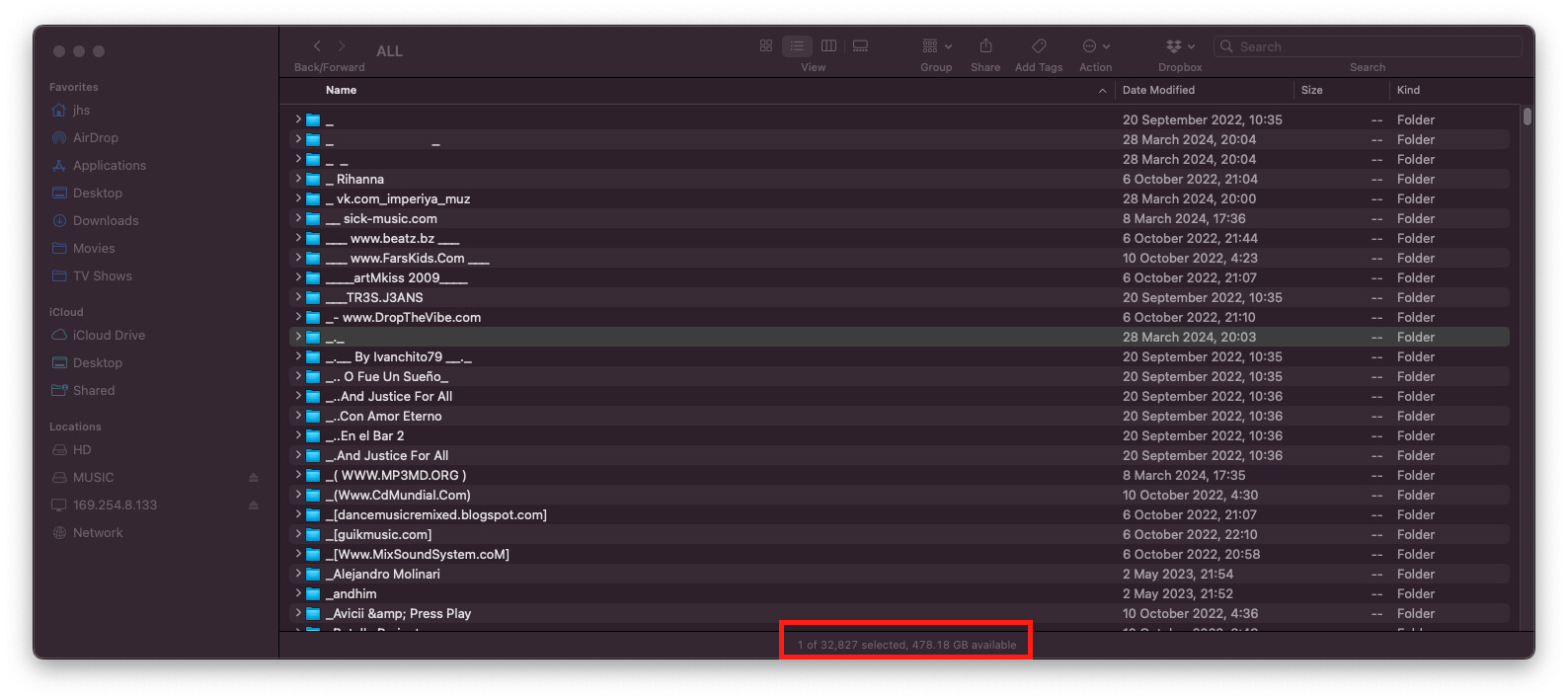 So for example my SSD is named MUSIC, then there is a folder called ALL inside it are all the subfolders by artists and each folder has differnt subfolders in it etc…