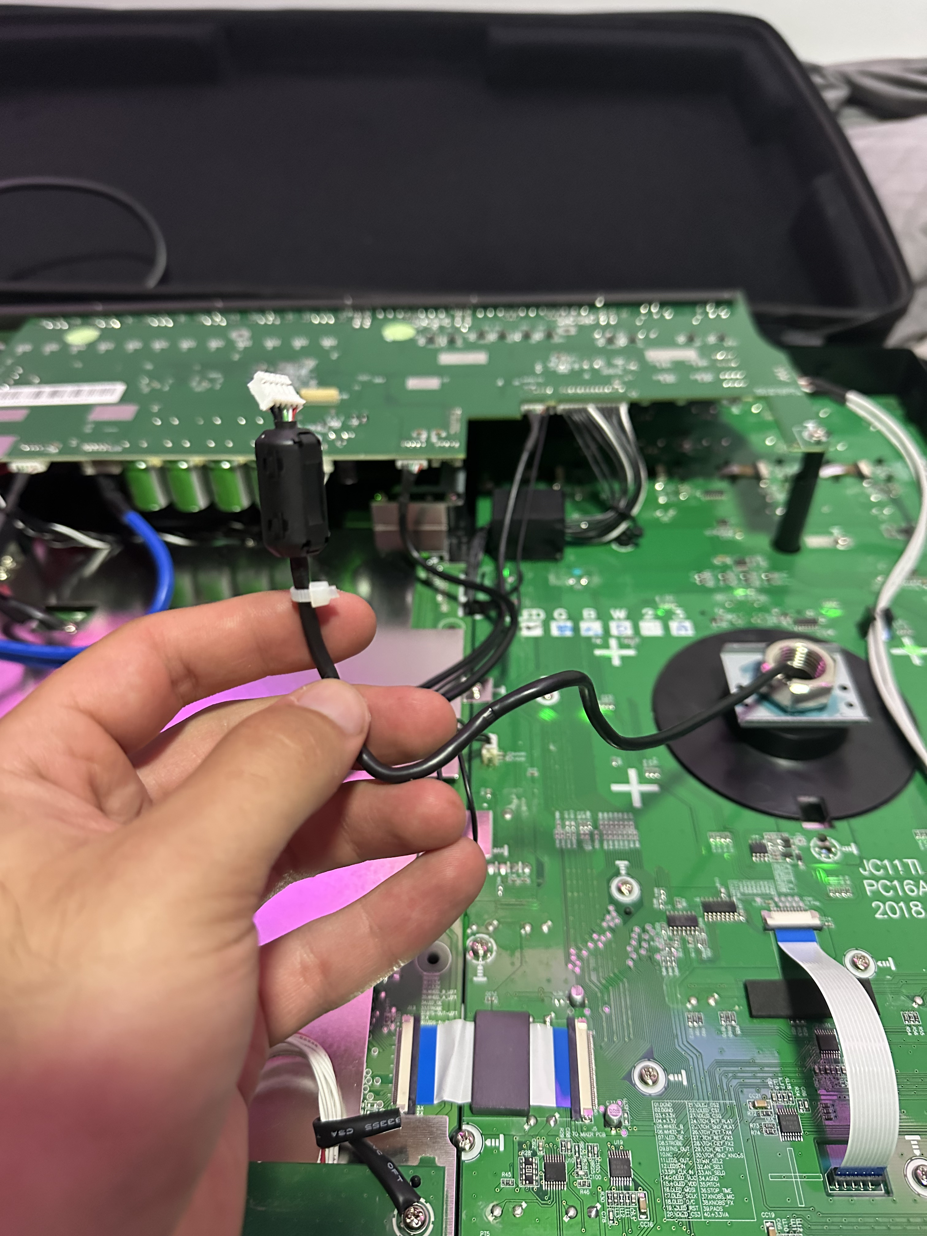 On my random thought I disassembled the controller, and found the cable that goes into the screen for the platter.