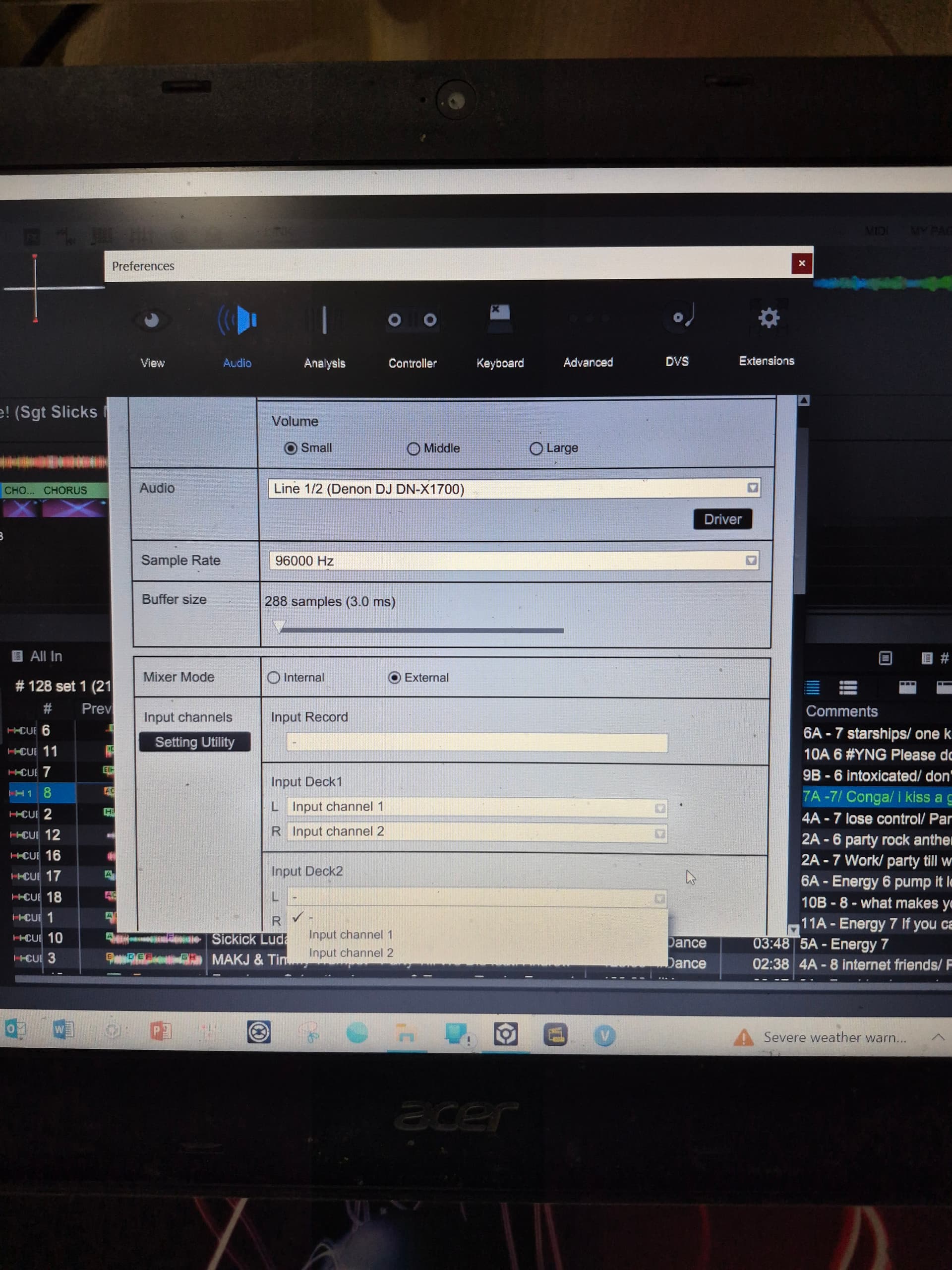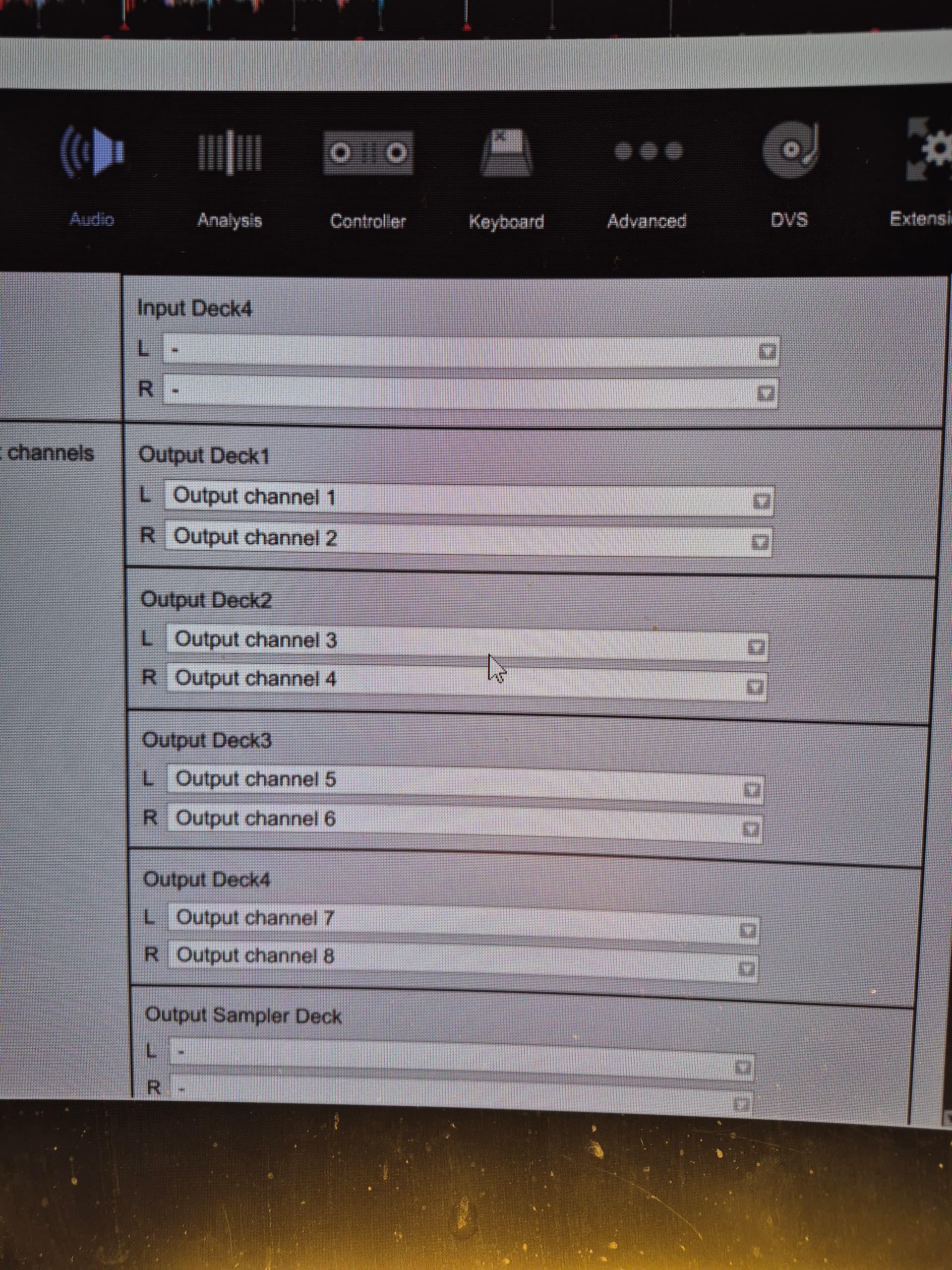 If I set the audio driver to Line 1/2 (denon DJ dn-x1700), there are options in input channels to choose input from input channel 1 and 2 for Deck 1. and I can use DVS function for channel 1. But no music out for channel 2.
