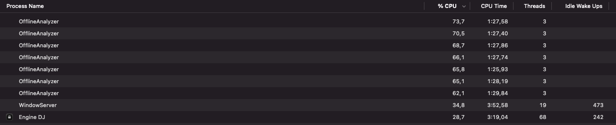 @djdragon Ok, lets see… I re-analyzed a playlist of 375 tracks, 70% mp3, 20% aiff and 10% flac. Time: 1min 33 secs while cpu load was 100% during that time. I did it 3 times to warm up the cpu a bit as the first run was a bit quicker as thermal throttling kicked in later. But this isn’t about absolute numbers, it shall provide a general feeling how far the Neo is behind comparable hardware.