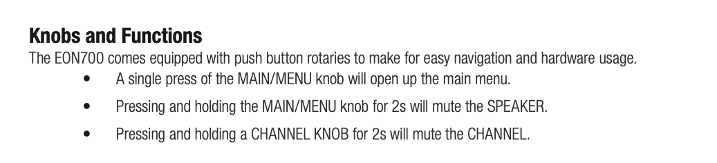 • Pressing and holding a CHANNEL KNOB for 2s will mute the CHANNEL