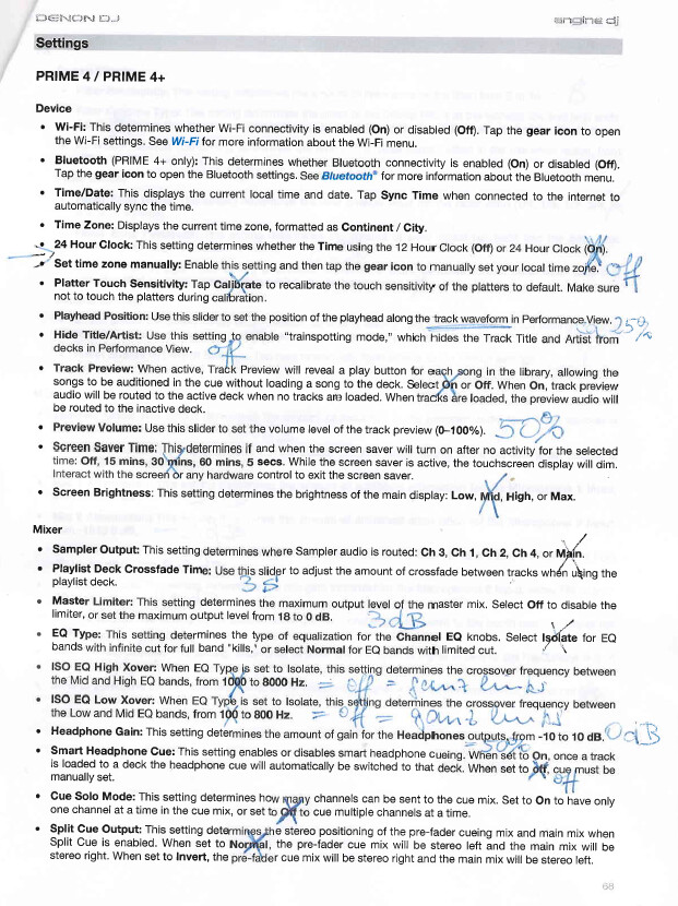 I printed out the pages from the manual (page 69 , item “Settings”).