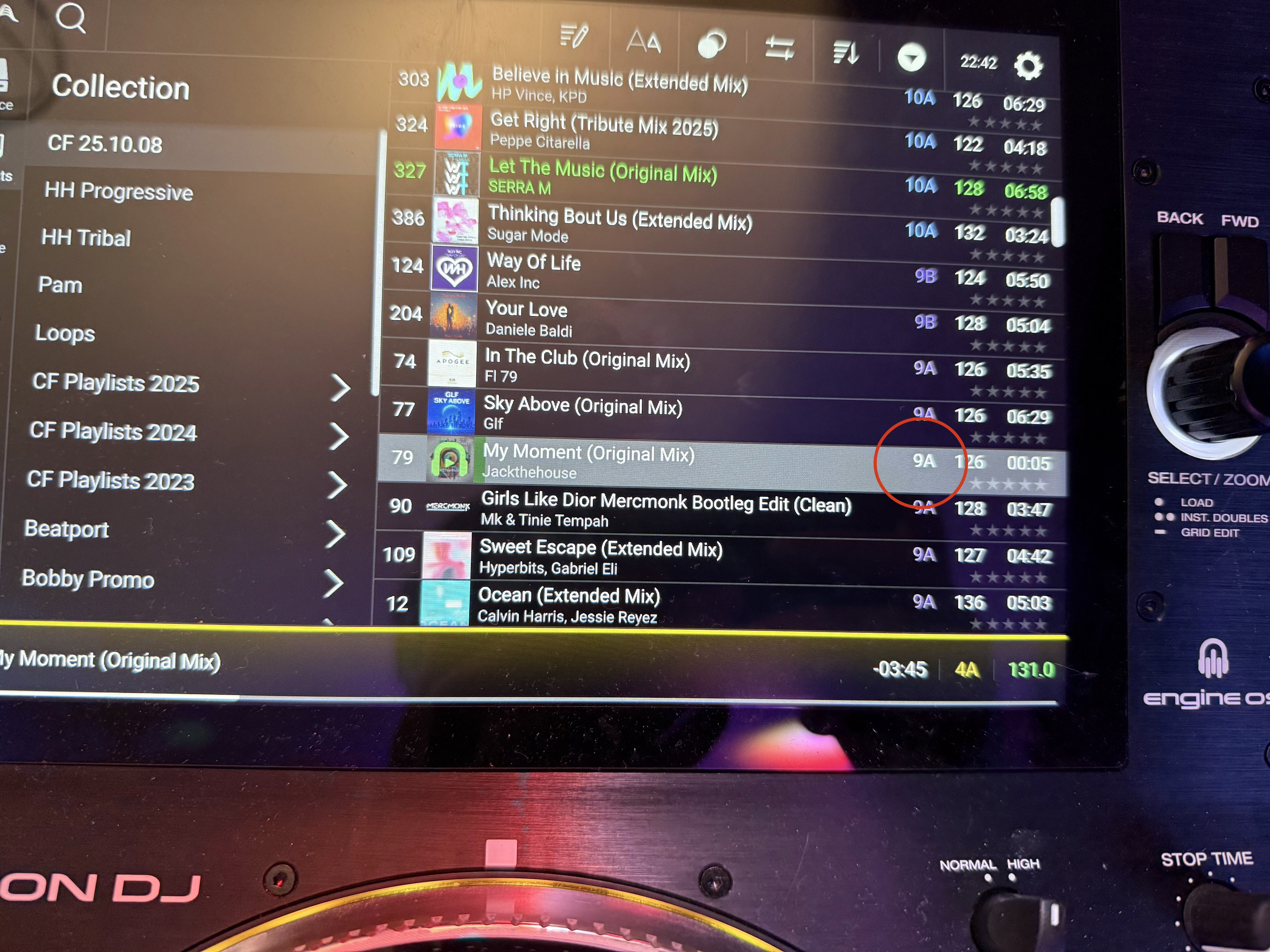 If you deactivate key lock in Engine DJ, it shows the distance from the actual key as a small bar above the key symbol that increases or decreases in length … a pretty nice feature.