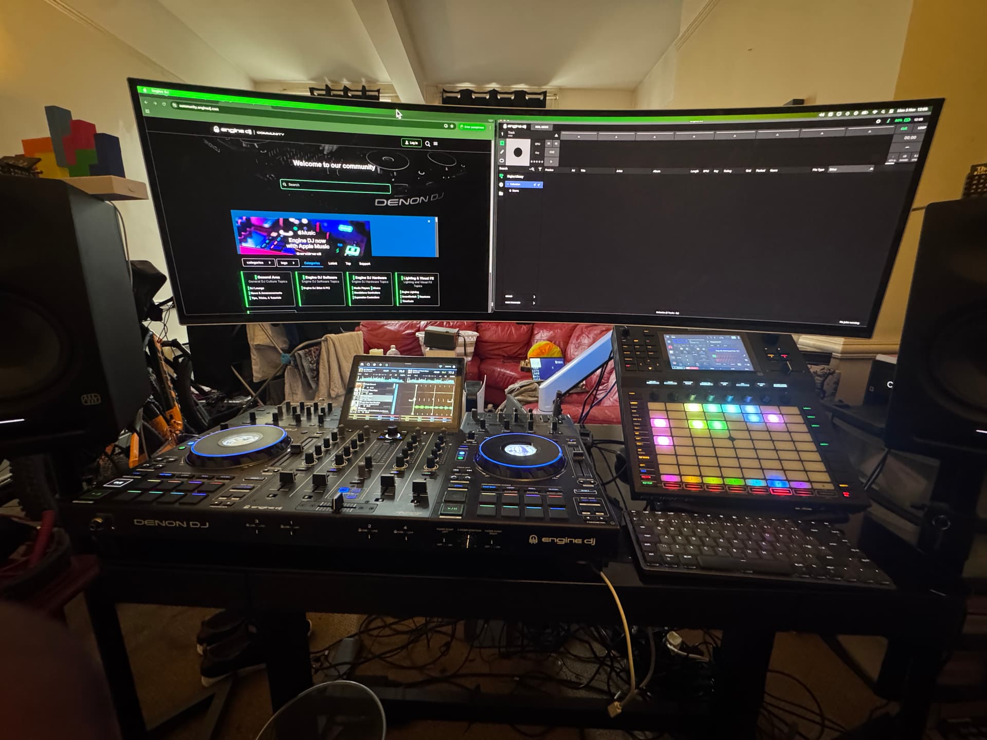 anyway all the set ups look really cool but curious about the ones that are facing walls. I have my set up facing the room prime 4+ and akai force combo. Is facing the wall so as not to be distracted or having wires better tucked away?