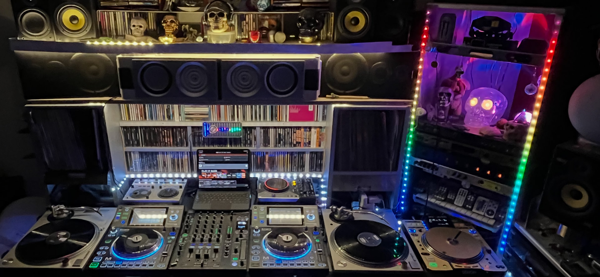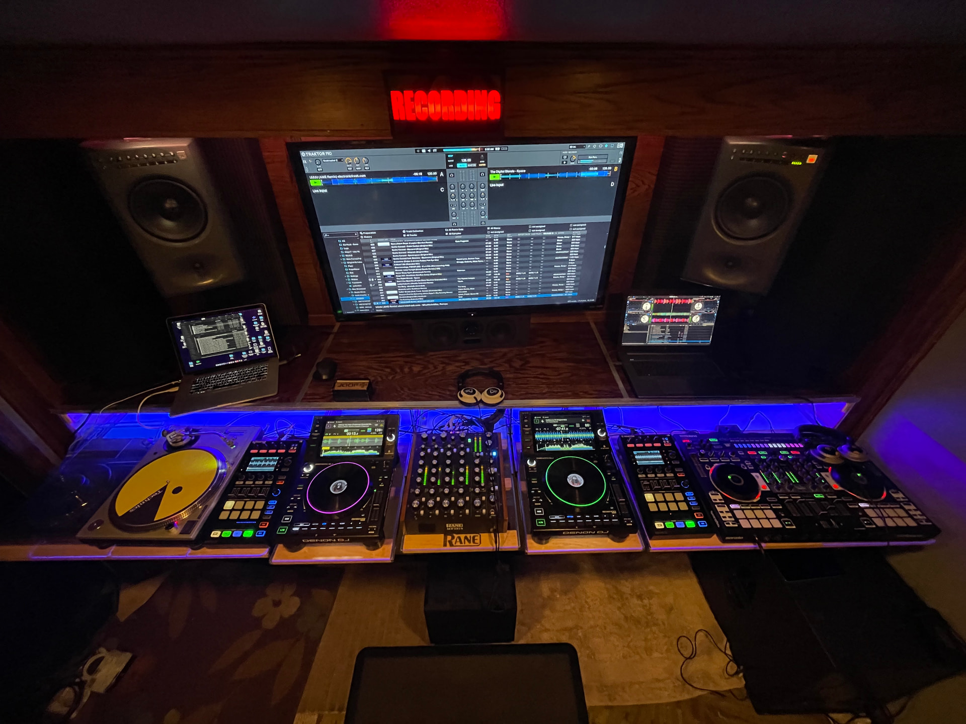 depends on where I’m at and what kind of mood I’m in for the week currently I’m running four SC 6000. 4 channels going into my rane rotary and four channels go into the X 1850 on the B side for anybody that likes faders that comes to visit me. That dump digitally into the session on the fifth channel of the rain and I have it so when you turn a level up, it’s just like the rain. It comes out the master over there. No master needed gets a little tricky queuing if I’m playing two decks on the X 1850 otherwise I just queue the fifth channel. Usually have a pioneer hooked up because anywhere I go that’s elsewhere … Well, you know the story. That plugs into the auxiliary on the rain if I’m updating record box. It’s actually really a nice set up with the up down table if I’m sitting or standing and the workflow I have going a lot of times the B sides are doing nothing more than sitting on SoundCloud or hooked up to a Bluetooth device devices, but it comes in handy. Bedroom therapy, DJ for 25 years and I’ve probably spent just as much time building DJ booze or thinking about building them as I have playing out but my time behind the deck is priceless in the house.