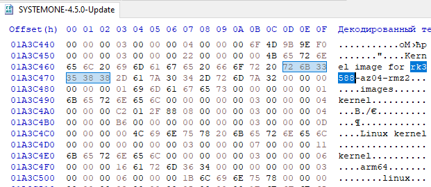 This is just a string inside the firmware image. It doesn’t necessarily mean that the System One has that SoC. It is likely a string from the build system kernel recipe (Yocto/Buildroot/etc.) that came with the BSP. That same kernel image may support several variants of the RK35xx family.