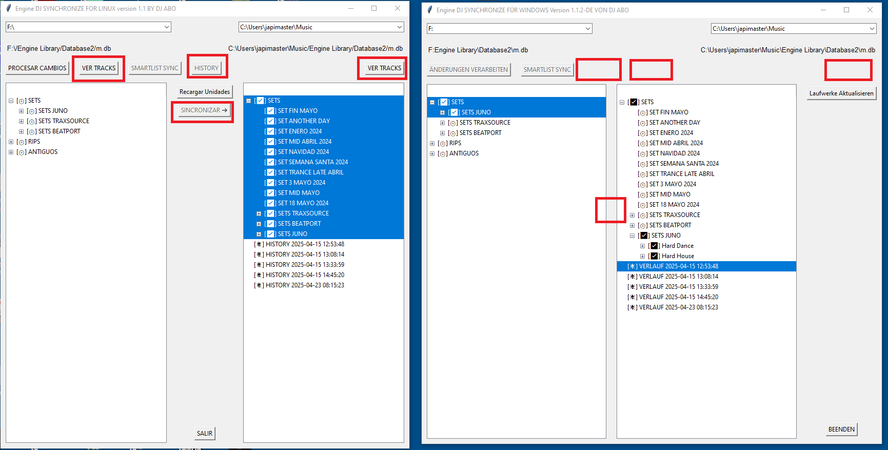 Added a button to extract History from performance databases. Ii shows a list of tracks in that history and can be saved to a text file. You’ll find the button to save history list in list of history tracks. Select a history list marked with ([]) and push History button. You will see a list of tracks and you can push save button to copy the list to a text file.